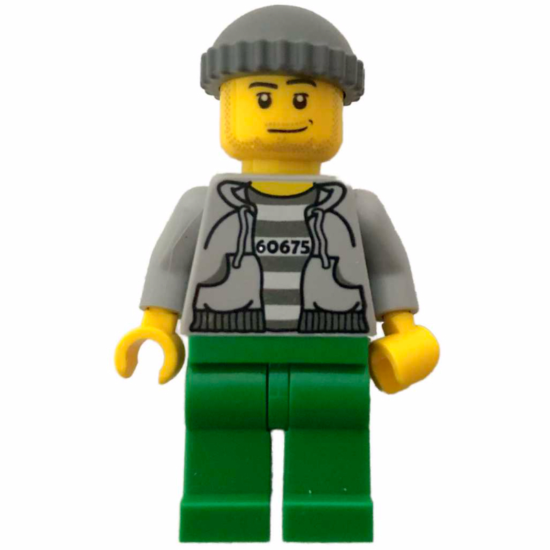 , Open Light Bluish Gray Hoodie over Prison Shirt with #60675 , Dark Bluish Gray Hat , Stubble (FIG - 008118)