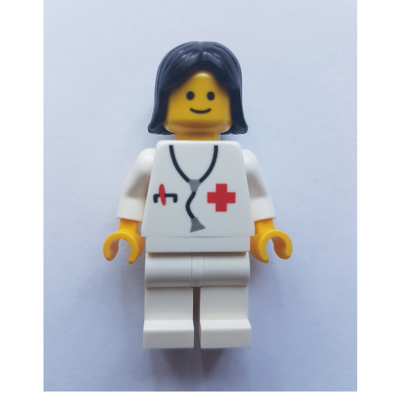 Minifigs Doctor - White Torso and Legs , Black Hair Female (3626c Head) (FIG - 010125)