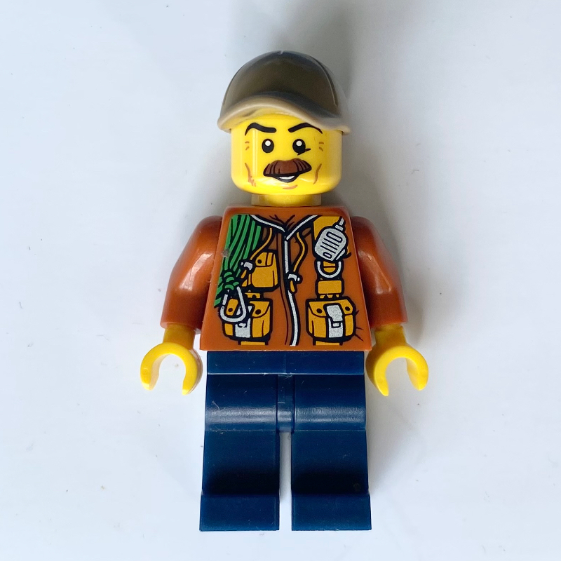 Minifigs Explorer , Jacket with Pouches , Radio , and Rope , Dark Tan Cap , Moustache (FIG - 007408)