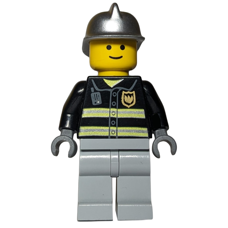 Minifigs Fire Fighter - Black Torso , Light Bluish grey Legs , Silver Helmet (FIG - 010699)