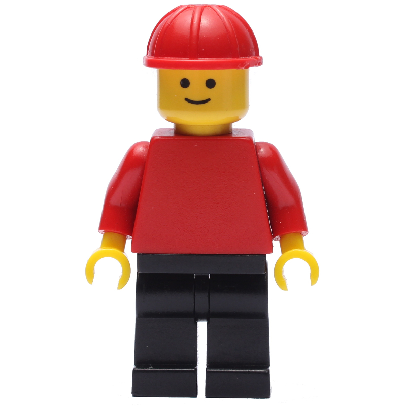 Minifigs Man , Red Torso , Black Legs , Red Hard Hat (3626b Head) (FIG - 008127)