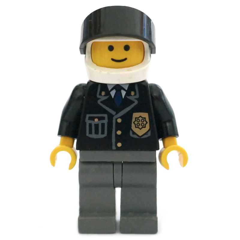 Minifigs Police - Black Torso , Dark Bluish Grey Legs , White Helmet , Black Visor (FIG - 010707)